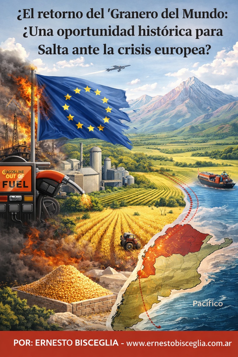 RESUMEN: Ante la advertencia de la Unión Europea sobre un racionamiento de combustibles y una crisis energética prolongada, Argentina se encuentra frente a una oportunidad histórica similar a la de la Segunda Guerra Mundial para consolidarse como potencia agroexportadora. En este escenario, Salta emerge como una pieza estratégica gracias a su gran producción de materias primas y su salida clave hacia el eje Asia-Pacífico. Es un llamado a la acción para que la provincia lidere el regreso de Argentina como actor indispensable en el mercado global.